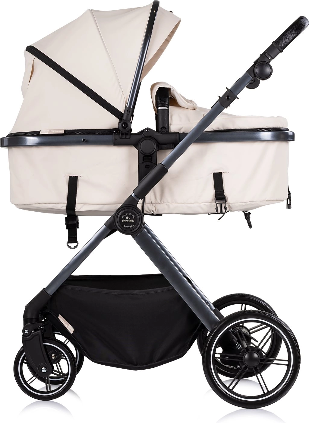 De CHIPOLINO Pearl 2-in-1 groeit met je kind mee – de sportzitting tover je gemakkelijk om in een ruime wieg voor pasgeborenen. De grote, uitbreidbare kap met ventilatievenster beschermt tegen de zon en laat je je baby altijd in het oog houden. Details van PU-leer geven een luxueuze uitstraling en maken het onderhoud eenvoudig.