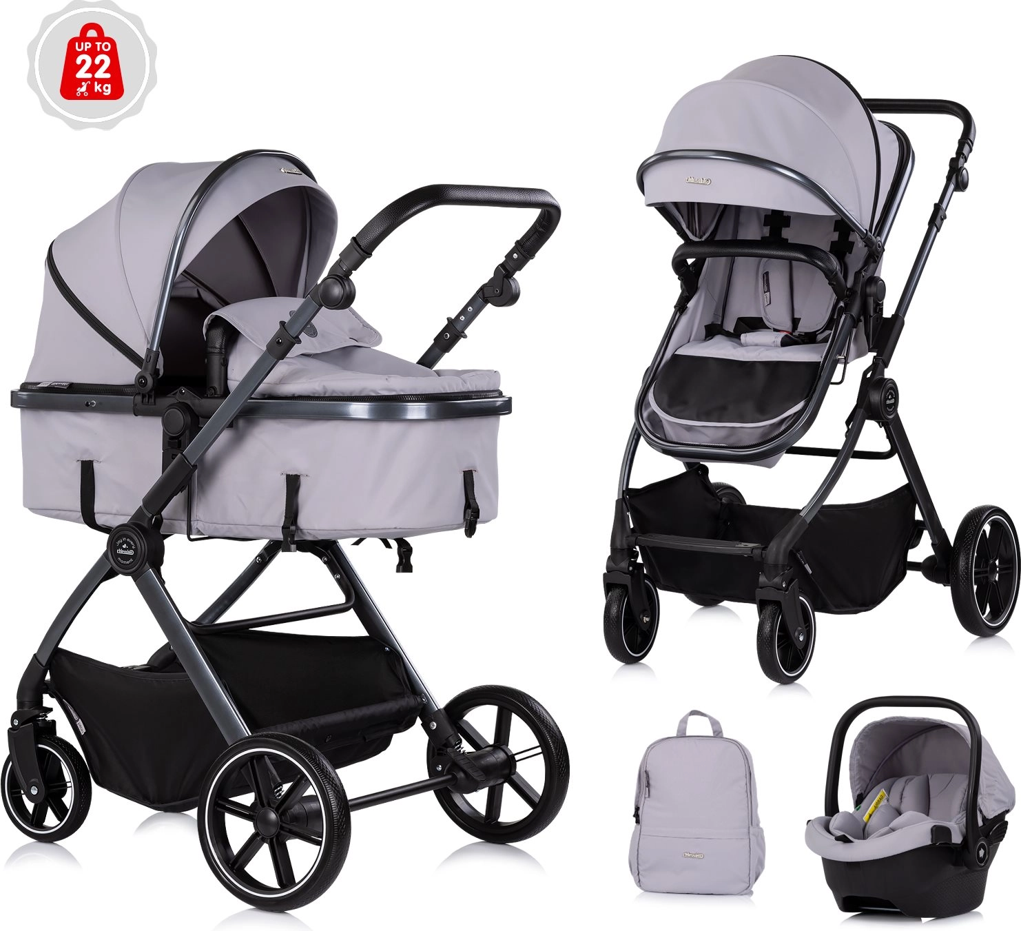 Stijlvolle en praktische 2-in-1 kinderwagen Chipolino Pearl Platinum biedt elke dag comfort voor zowel baby als ouders. De zitting is eenvoudig om te vormen tot een reiswieg voor pasgeborenen, met een verlengbare kap met kijkvenster, in hoogte verstelbare duwbeugel, vering op alle wielen en een ruime mand voor alles wat je nodig hebt. Voldoet aan strenge Europese veiligheidsnormen.