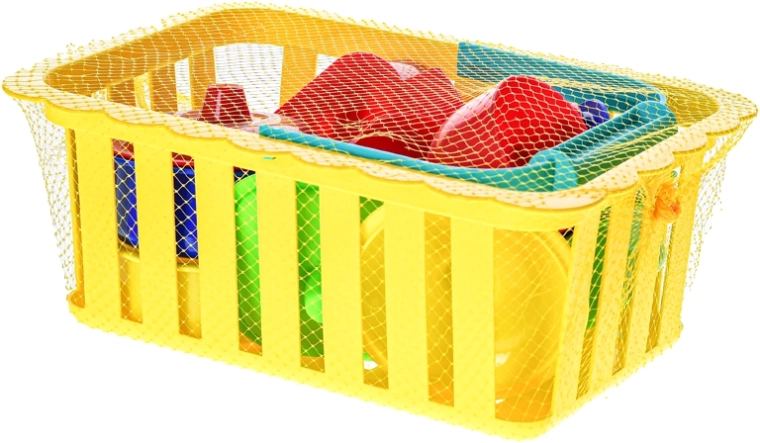 De set bevat een praktische mand waarin kinderen alle onderdelen makkelijk kunnen opbergen. De mand is ook geschikt voor het vervoeren van de hele set, op bezoek of naar de tuin. De levendige kleuren ondersteunen de kleurwaarneming en maken spelen extra leuk.