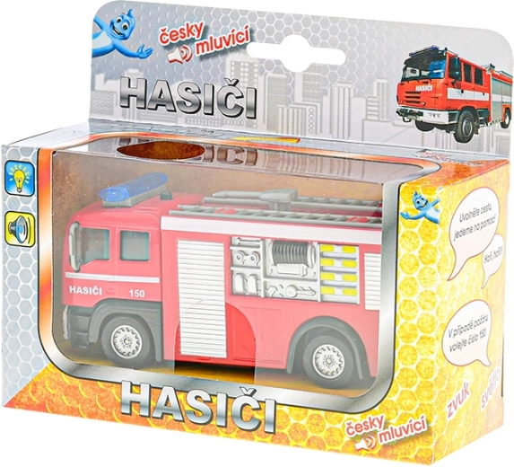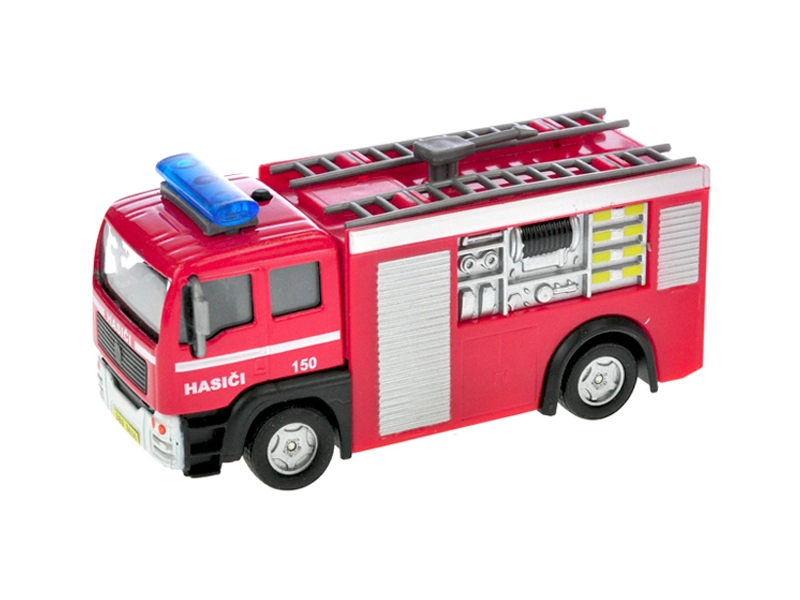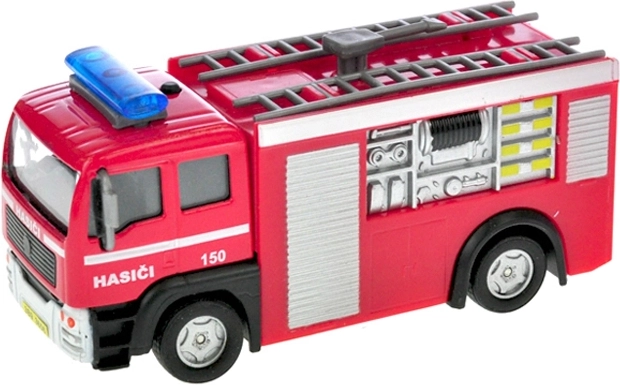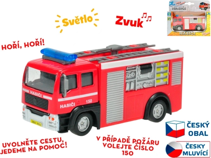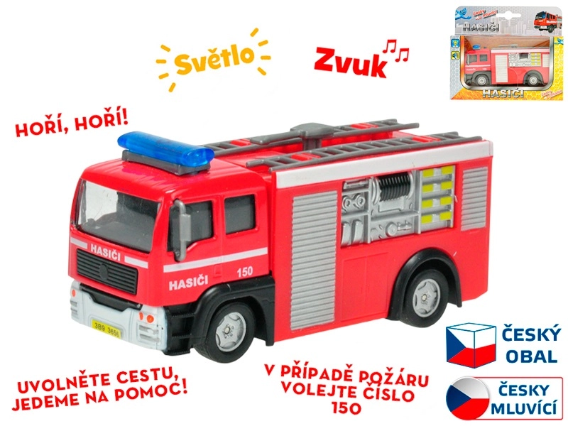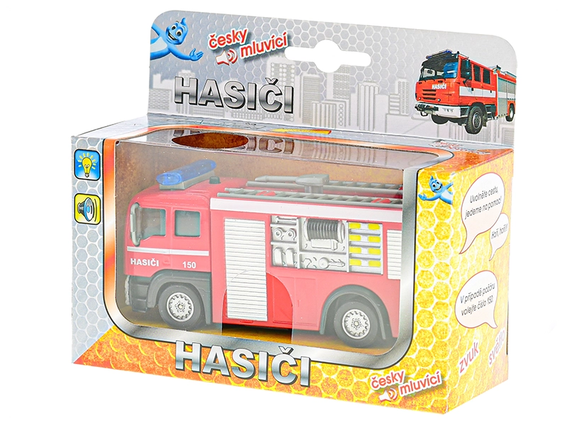 Realistische interventie-brandweerauto van 12 cm die elke kleine redder zal verrassen. Trek hem naar achteren en hij rijdt vanzelf dankzij het terugtrekmechanisme, aangevuld met Tsjechische waarschuwingsmeldingen en lichteffecten. Op de carrosserie staat ook het telefoonnummer 150, zodat kinderen leren het juiste nummer voor hulp te bellen.