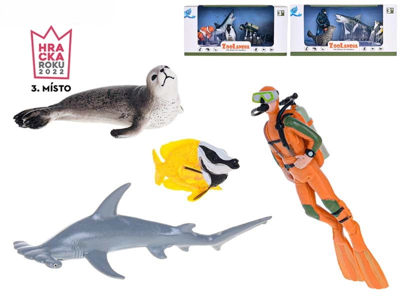 Ontdek de onderwaterwereld met de figuren set Zoolandia duiker met haai en thematische accessoires. Ideaal voor creatief spel en het ontwikkelen van de fantasie van kinderen. Verkrijgbaar in 3 soorten haaien – witte haai, tijgerhaai en hamerhaai. Geschikt voor kinderen vanaf 3 jaar.