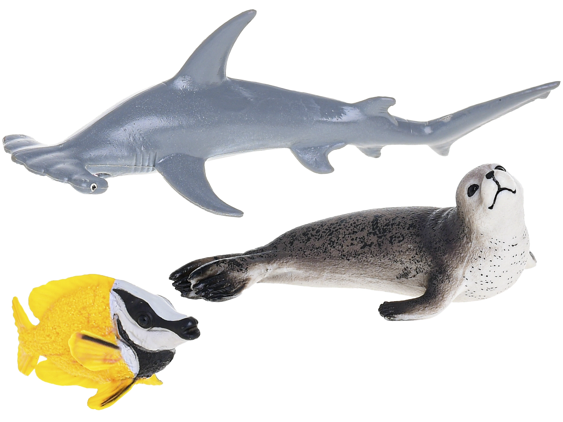 Kies uit 3 realistisch uitgewerkte varianten haaien: witte haai, tijgerhaai en hamerhaai. Elke set is verpakt in een doosje, dus ook geschikt als cadeau.