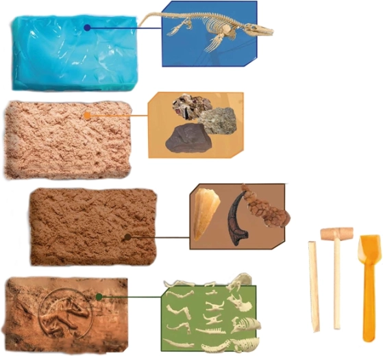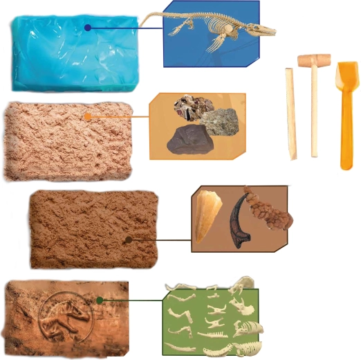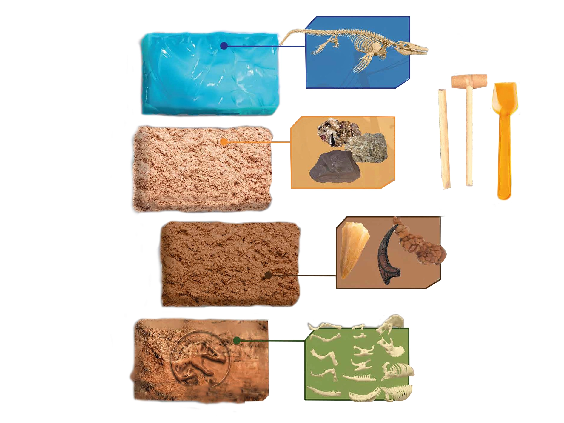 - 4 verschillende fossielen om te onthullen – meer plezier en ontdekkingen.