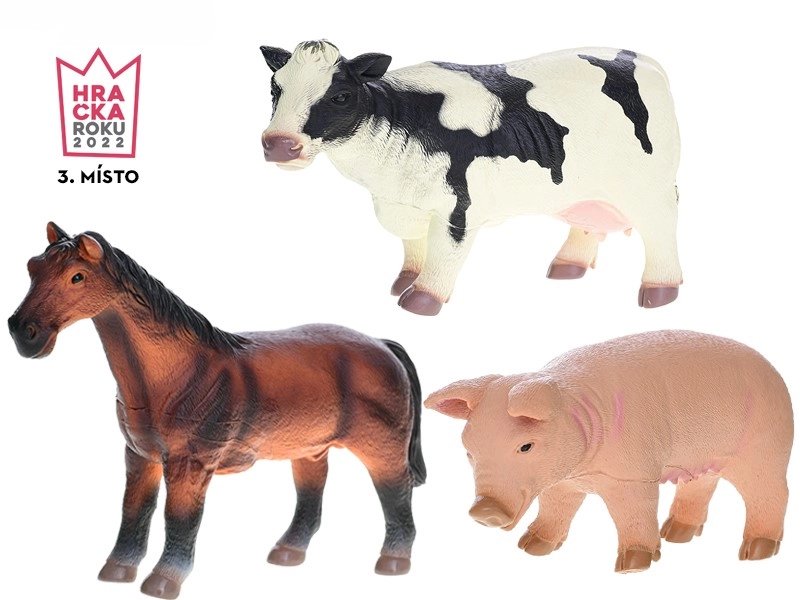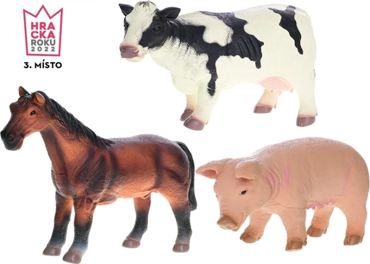 In de verpakking vind je 3 boerderijdieren – een paard, een koe en een varken. Het duurzame plastic is bestand tegen dagelijks spelen, thuis en onderweg, en is eenvoudig afwasbaar. Deze set is een perfecte aanvulling voor kleine dierenliefhebbers en een geweldig begin voor het bouwen van een eigen boerderij.