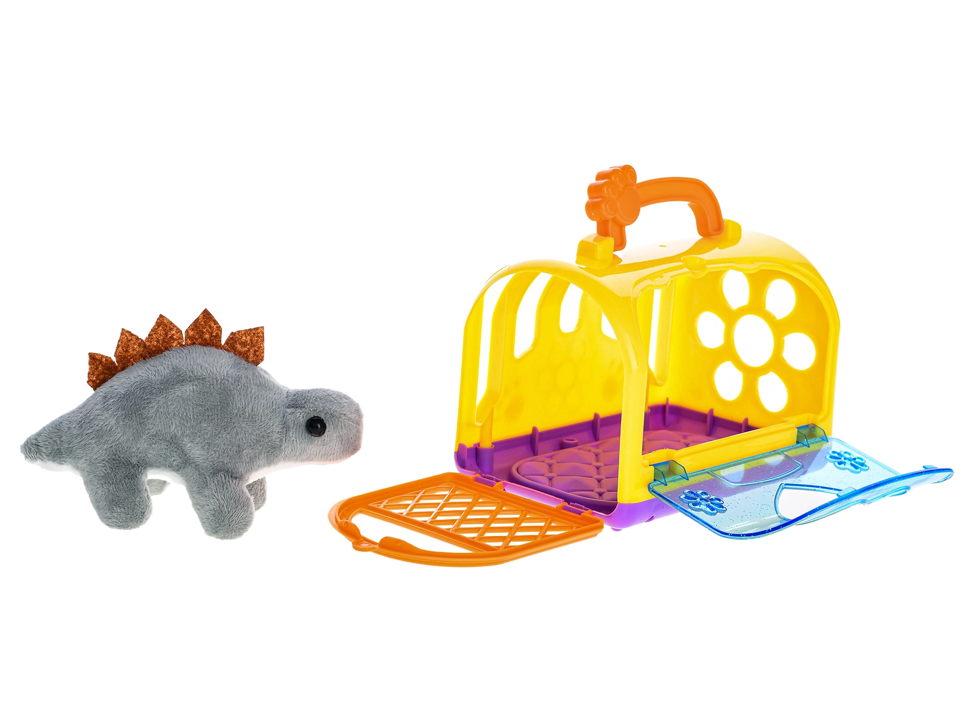Een schattige pluchen dinosaurus van 14 cm is de ideale vriend voor kleine ontdekkers. Gemaakt van zachte, aaibare pluche voor veilig spelen en heerlijk knuffelen. Inclusief een praktische plastic draagkooi met afmetingen 15 × 11 cm voor eenvoudig dragen en opbergen. Verkrijgbaar als stegosaurus (blauw of grijs) en triceratops. Geschikt vanaf 24 maanden.