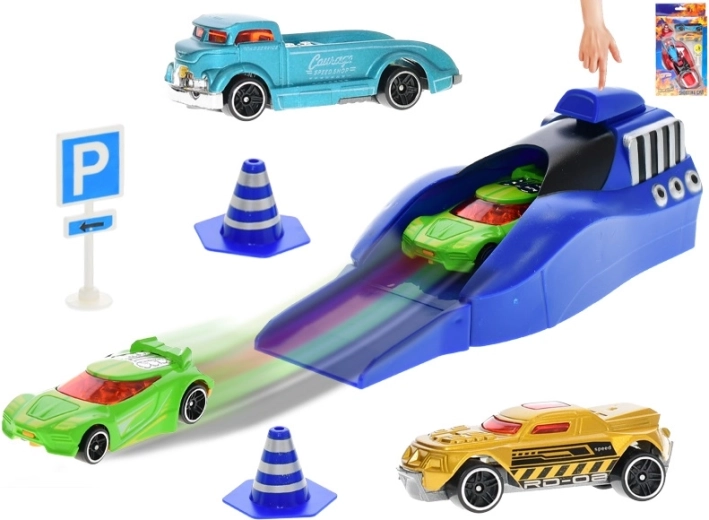 De veerlauncher stuurt het autootje in een seconde naar voren – ideaal voor races op vlakke oppervlakken en geïmproviseerde circuits.
