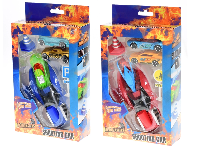 De ROADBLASTERS-set brengt adrenalinevolle races direct naar de kinderkamer. Kinderen kiezen hun favoriete kleur autootje (rood of blauw), zetten de verkeersborden klaar en sturen de wagens met één druk op de lanceerder vooruit. Hoge snelheden en realistische spelscenario’s garanderen urenlang plezier.