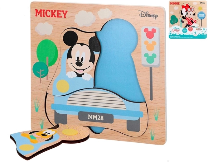 Schattige houten puzzel met motieven van DISNEY Mickey en Minnie, ideaal als eerste puzzel voor kinderen vanaf 12 maanden. Bevat 4 grote stukjes voor makkelijke grip, ondersteunt fijne motoriek, oog-handcoördinatie en het leren van vormen en kleuren. Gemaakt van natuurlijk, duurzaam hout voor veilig en langdurig speelplezier. Het motief wordt willekeurig geleverd afhankelijk van de voorraad.