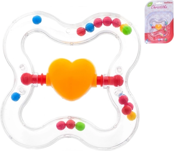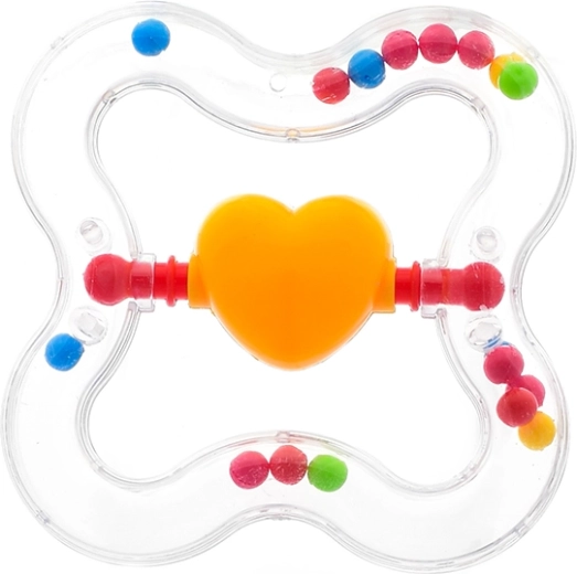 Deze schattige rammelaar met een draaiend hartje is het ideale eerste speeltje voor kinderen vanaf 3 maanden. Hij is gemakkelijk vast te pakken met kleine handjes, ondersteunt de zintuiglijke ontwikkeling, de fijne motoriek en valt op door het aantrekkelijke design. Gemaakt van hoogwaardige en veilige kunststof, geschikt voor thuis en onderweg.