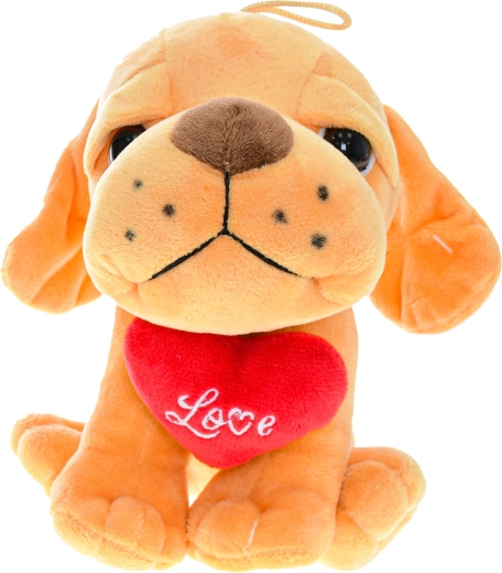 Een schattig zittend pluche hondje van 15 cm hoog is de ideale metgezel voor de allerkleinsten vanaf de geboorte. Het heeft een superzachte stof, een vriendelijke uitstraling en houdt in de pootjes een hartje met de tekst Love – perfect als Valentijnscadeau en voor dagelijks knuffelen.