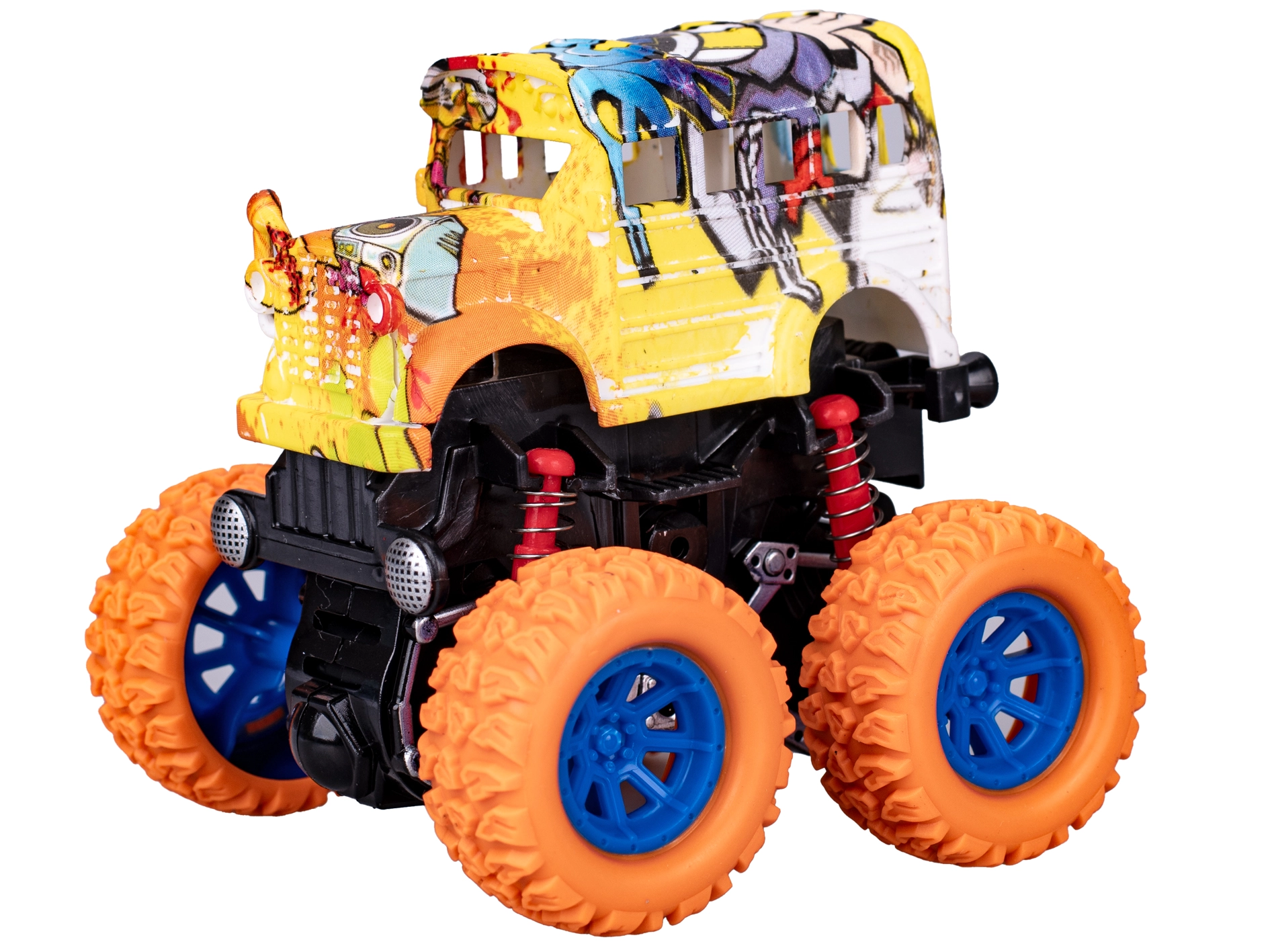 De Crazy Truck bus is een compact speelgoed van 9 cm lang, dat dankzij de vliegwielaandrijving gemakkelijk vooruit schiet – gewoon een duwtje geven. Grote wielen en duurzaam kunststof zorgen voor stabiel rijden en een lange levensduur, zelfs bij intensief spelen.