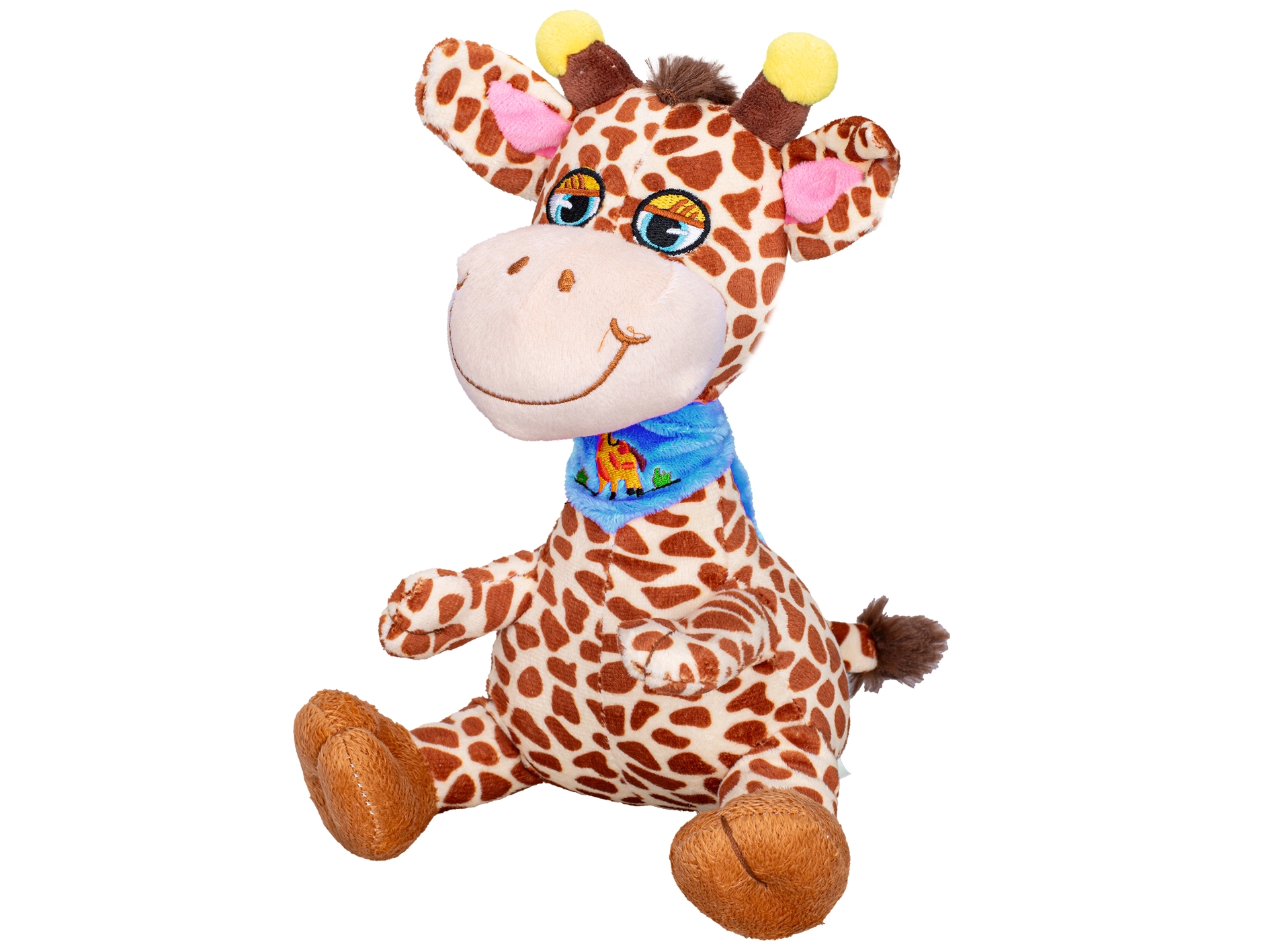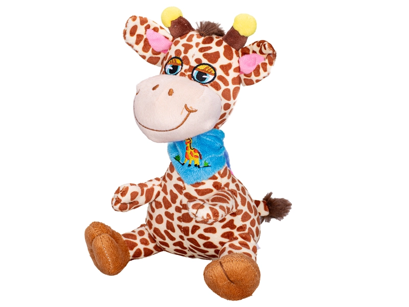Een schattige pluchen giraf van 20 cm hoog is het ideale eerste speeltje voor de allerkleinsten. Gemaakt van zachte, knuffelige pluche, met een vrolijke glimlach en een stabiel zittend design. Verkrijgbaar in twee varianten met sjaaltje – blauw of roze – voor een makkelijke keuze naar smaak. Geschikt vanaf de geboorte en perfect om te knuffelen en mee te nemen op reis.