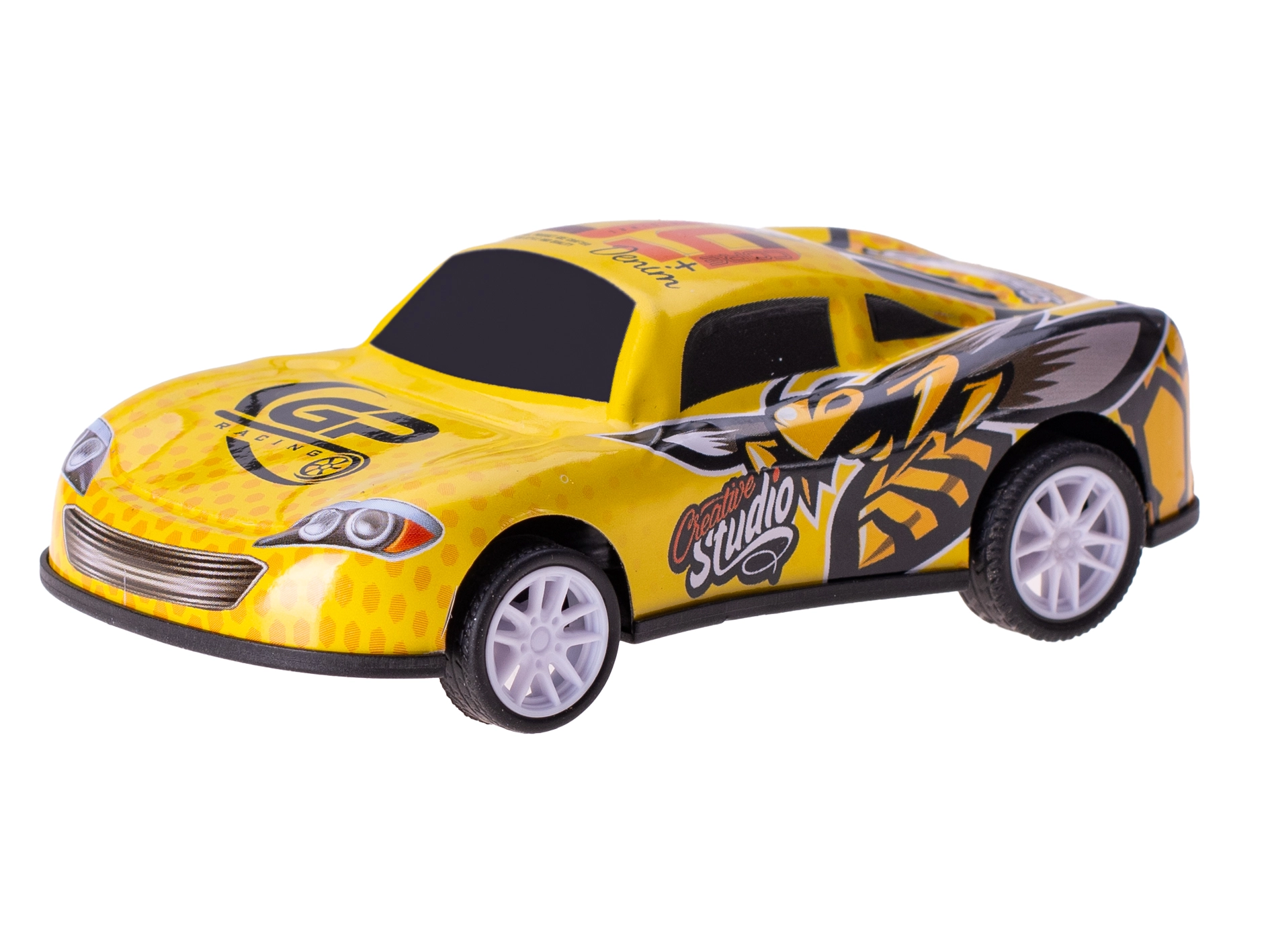 Leuk metalen raceautootje van 10 cm lang met terugtrekmechanisme (pull-back) dat zowel jonge coureurs als verzamelaars zal verrassen. Trek het naar achteren en het schiet vanzelf naar voren, wat zorgt voor veel actie en tegelijkertijd de fijne motoriek en coördinatie ontwikkelt. Verkrijgbaar in zes opvallende kleuren, zodat ieder kind zijn favoriet kan kiezen.
