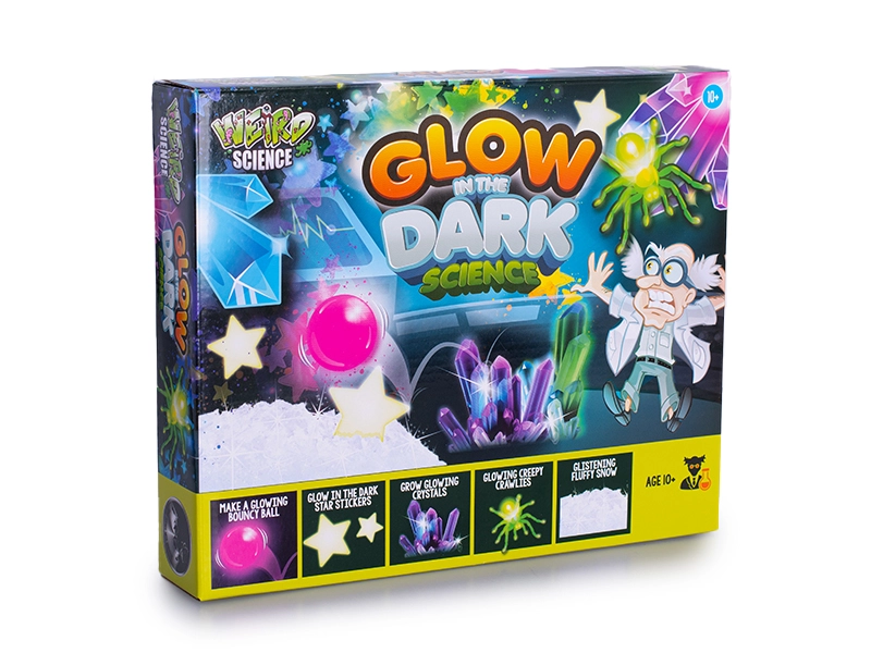 De Glow in the Dark-set is een ideale keuze voor jonge ontdekkers die op speelse wijze kennis willen maken met chemie en fysica. Kinderen maken hun eigen lichtgevende creaties, trainen creativiteit en handigheid en leren de basisprincipes van wetenschap begrijpen.