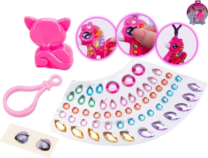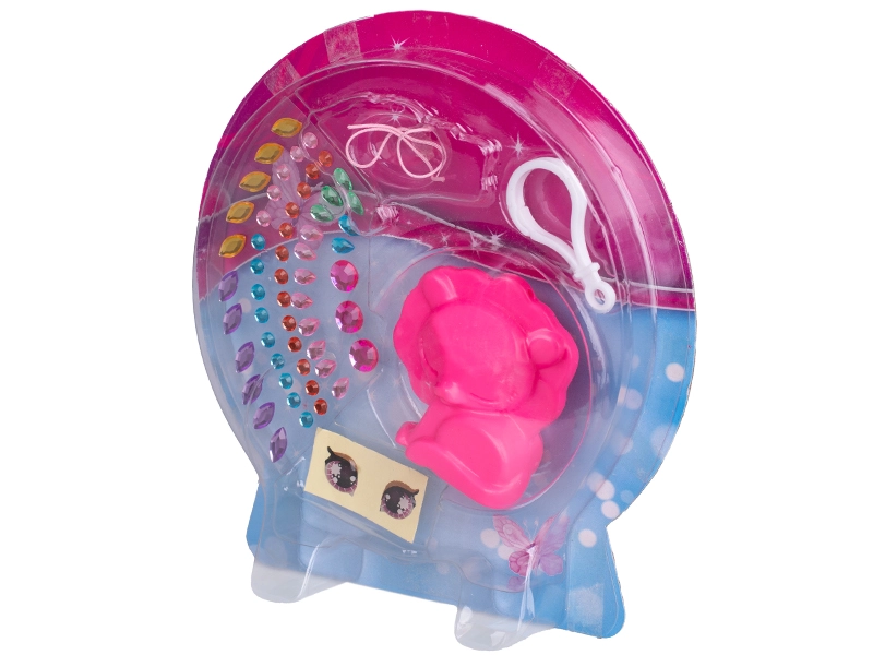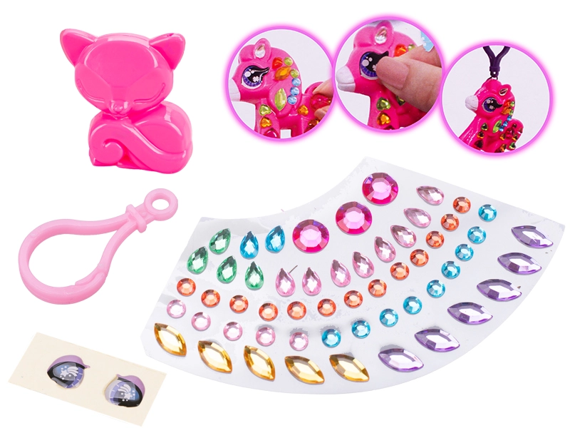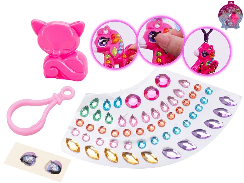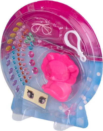 Deze glamoursset is ideaal voor kleine creatievelingen die houden van knutselen en het personaliseren van accessoires. In de verpakking vind je alles wat je nodig hebt – een plastic diertje (6 cm), een praktische karabijnhaak om te bevestigen en gekleurde zelfklevende steentjes, inclusief oogstickers. Versieren is eenvoudig en leuk; het resultaat is een originele sleutelhanger naar jouw smaak.
