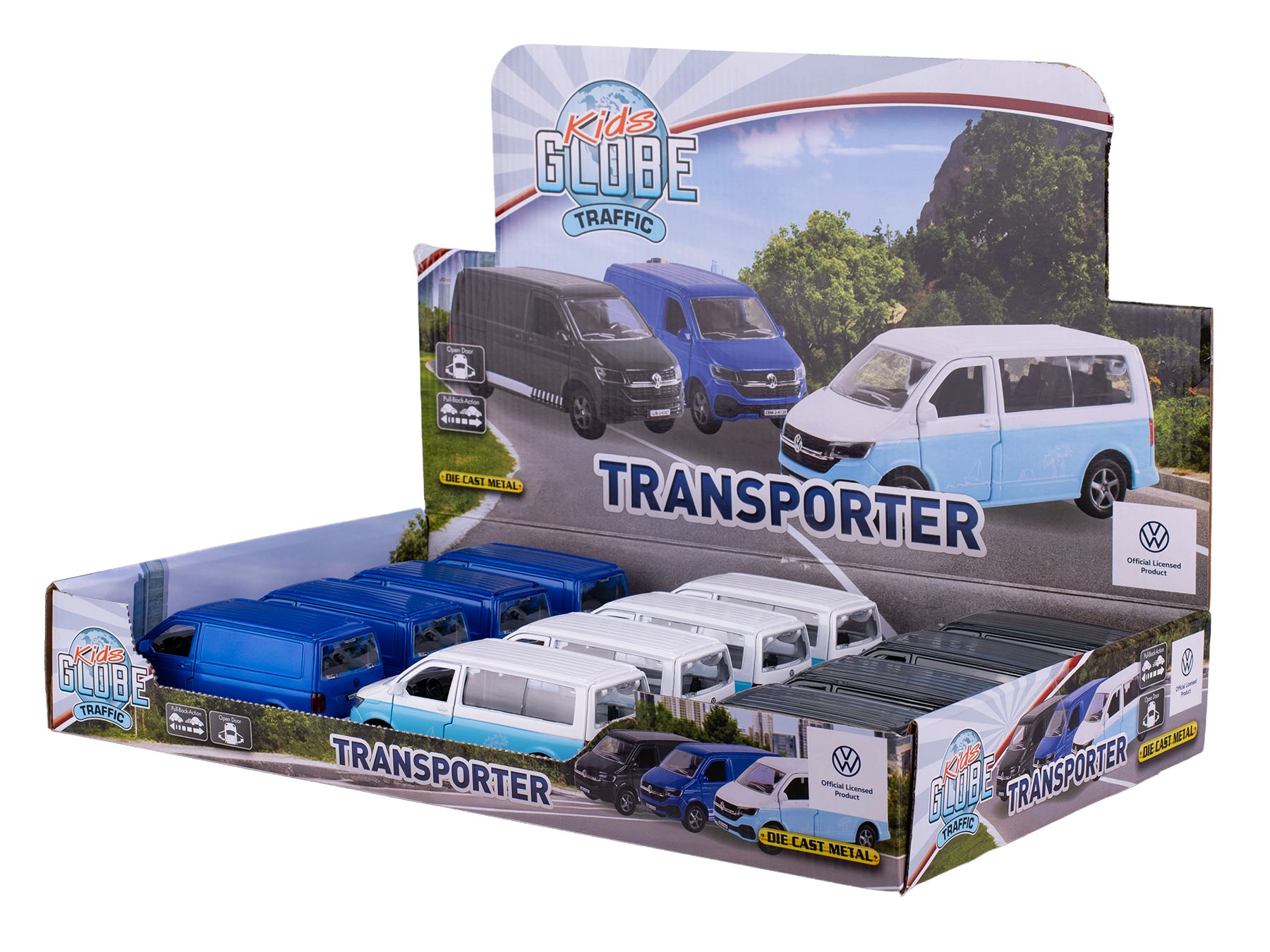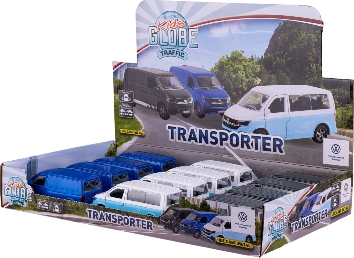 Het Kids Globe Traffic VW Transporter model is een iconische bestelwagen in compact formaat van 13,5 cm, die zowel jonge als oudere autoliefhebbers zal bekoren. De zorgvuldige afwerking, de combinatie van metalen en kunststof onderdelen en realistische details zorgen voor een lange levensduur en een aantrekkelijke uitstraling.