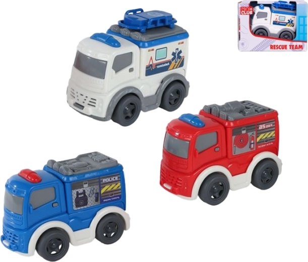 Er zijn drie populaire varianten beschikbaar – politieauto, brandweerwagen en ambulance – die uitnodigen tot spannend reddingsspel en de verbeelding stimuleren. Elk voertuig is individueel in een doosje verpakt, waardoor het een leuk klein cadeautje is.
