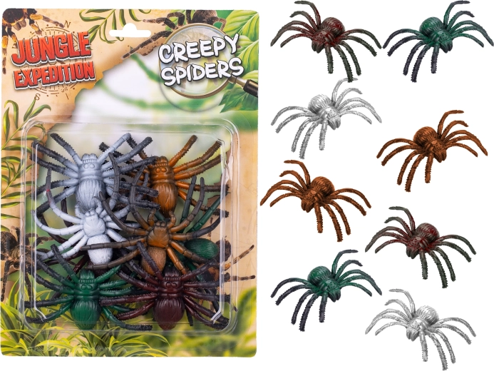 Ontdek de wereld van insecten met de set van acht realistische Jungle Expedition-spinnen. Elke figuur is ongeveer 6 cm groot, gemaakt van hoogwaardig plastic en gedetailleerd afgewerkt. Perfect voor rollenspellen, educatie en verzamelaars. Realistische uitstraling, verschillende kleuren en duurzaam materiaal zorgen voor uren speelplezier.