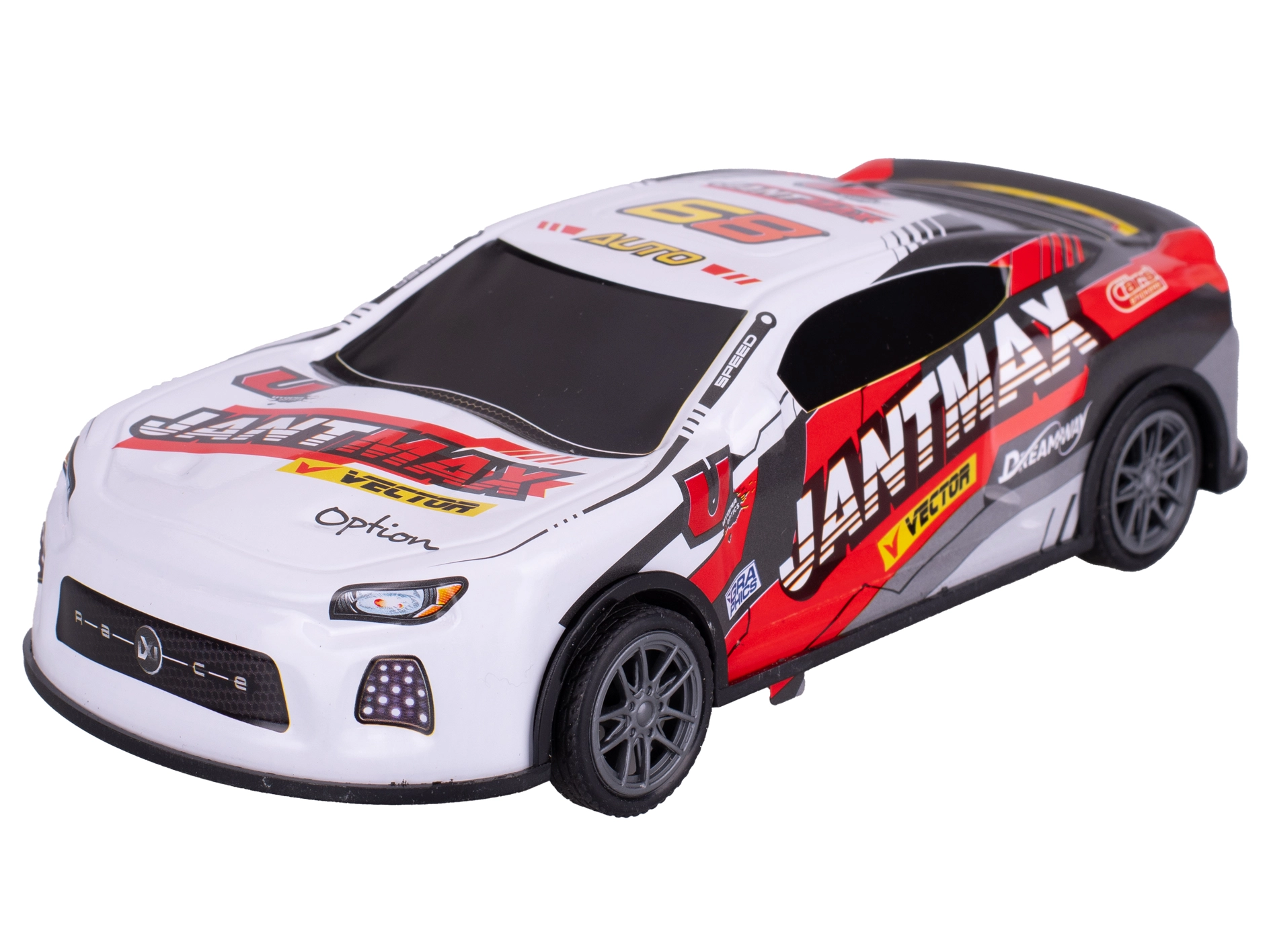 - Actief driften dankzij vliegwielaandrijving – geen batterijen, gewoon terugtrekken en rijden.