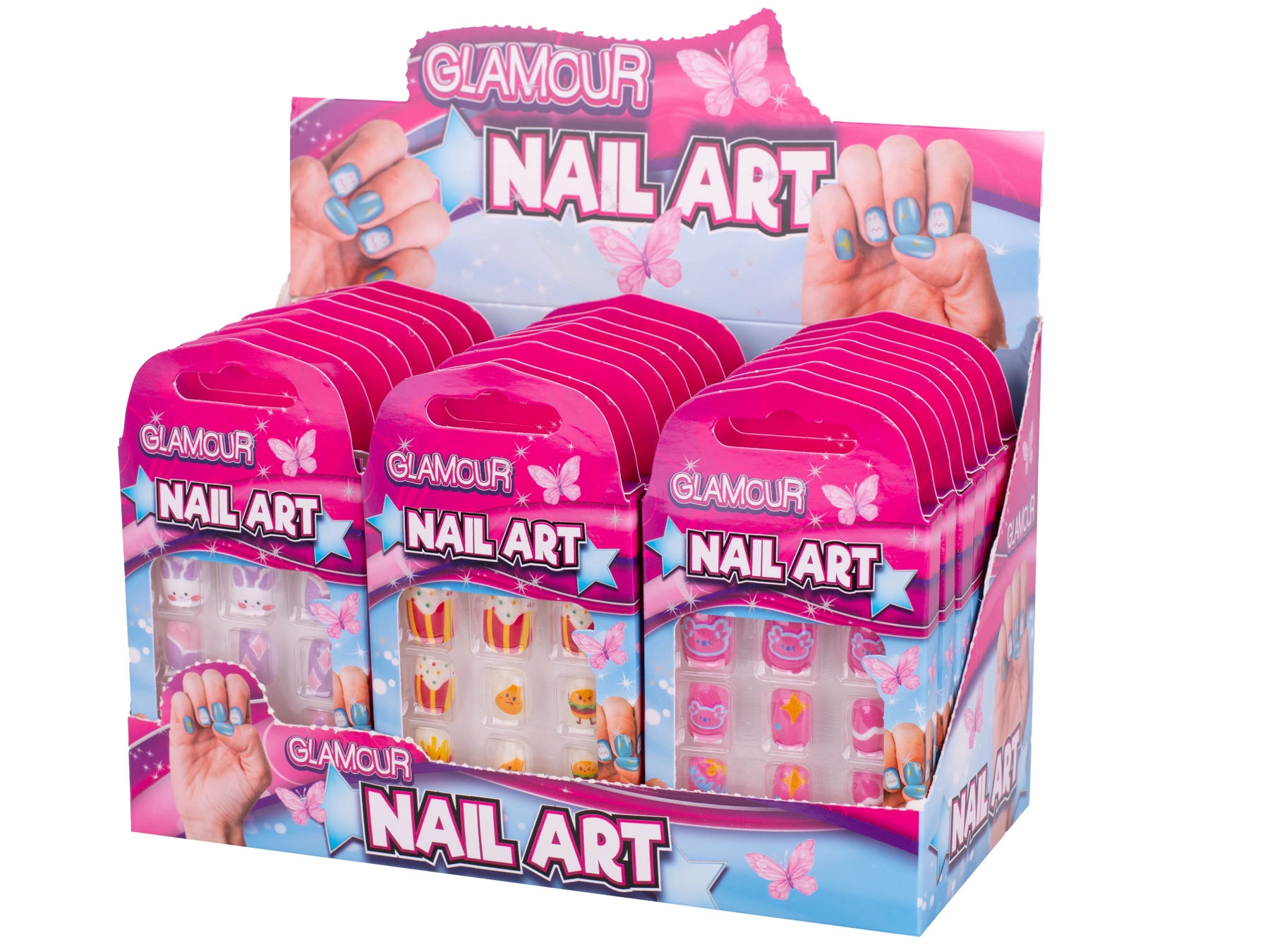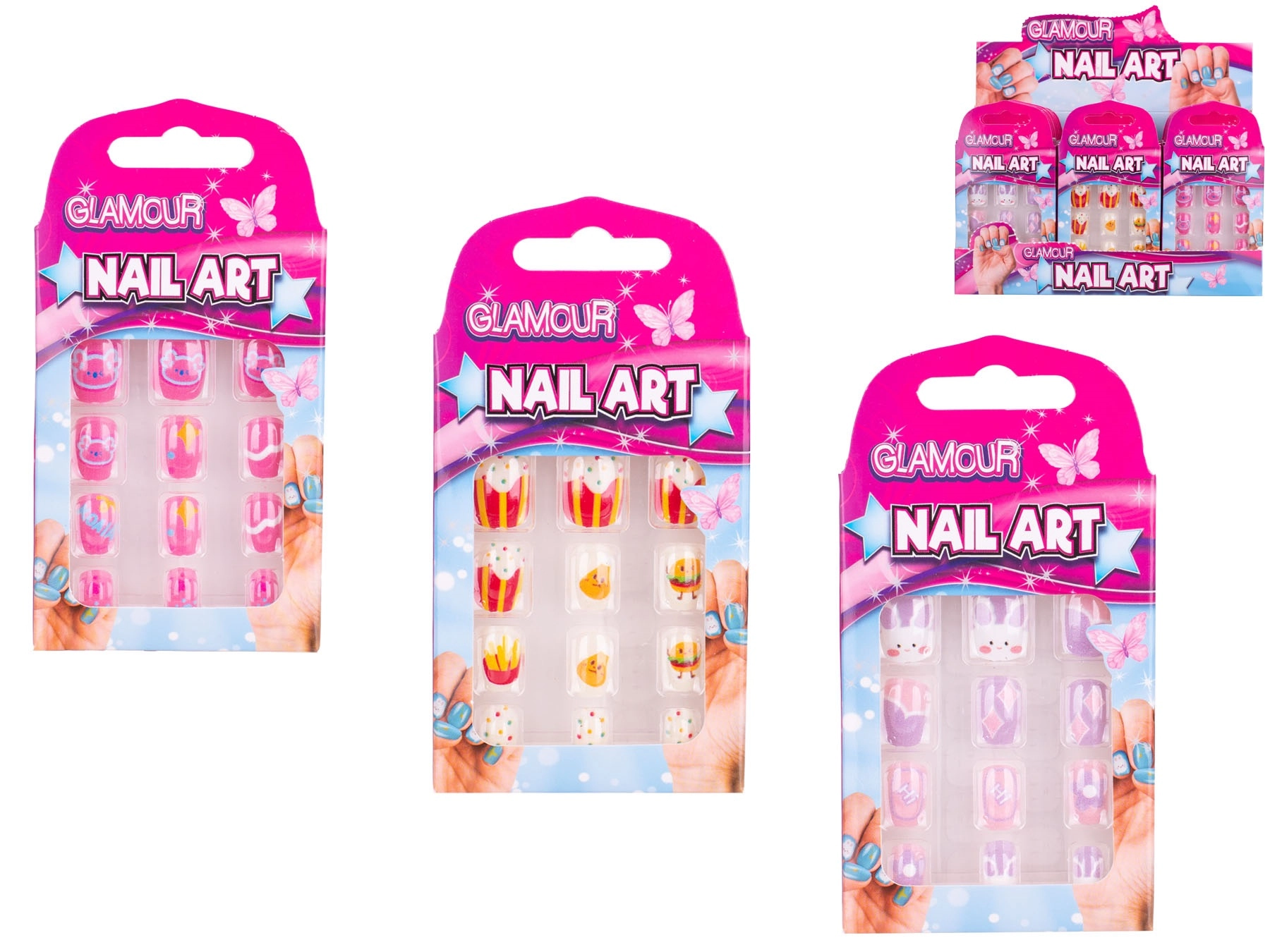 Geef de stijl van je kind in een handomdraai een boost met de Glamour set plaknagels. Bevat 12 lichte plastic nageltjes met schattige motieven – eten, konijntjes en koala’s. Eenvoudige applicatie zonder nagellak zorgt voor een snelle look-wissel, ideaal voor feestjes, carnavals en dagelijks speelplezier. In een praktische doos voor makkelijk opbergen en meenemen.