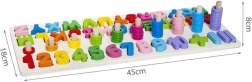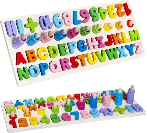 Deze multifunctionele houten puzzel combineert plezier en leren in één. Tijdens het spelen maken kinderen kennis met de vormen van letters en cijfers, leren ze deze benoemen, bouwen ze de eerste eenvoudige woordjes en oefenen ze rekenen met ringen op de pinnetjes. De levendige kleuren motiveren tot ontdekken en ondersteunen creativiteit en concentratie.
