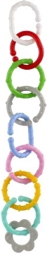 Ringen en vormen zijn eenvoudig aan elkaar te koppelen en blijven goed zitten, zodat kinderen kettingen kunnen maken of speelgoed aan de kinderwagen of autostoeltje kunnen bevestigen.