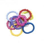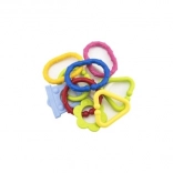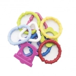 Deze set kleurrijke kunststof vormen is een ideale eerste speelgoedset voor baby’s. De onderdelen klikken eenvoudig in elkaar en blijven stevig zitten, zodat kinderen steeds opnieuw kettingen en eenvoudige constructies kunnen bouwen. Verschillende texturen en kleuren zorgen voor rijke sensorische stimulatie en het rammelende effect boeit en kalmeert.