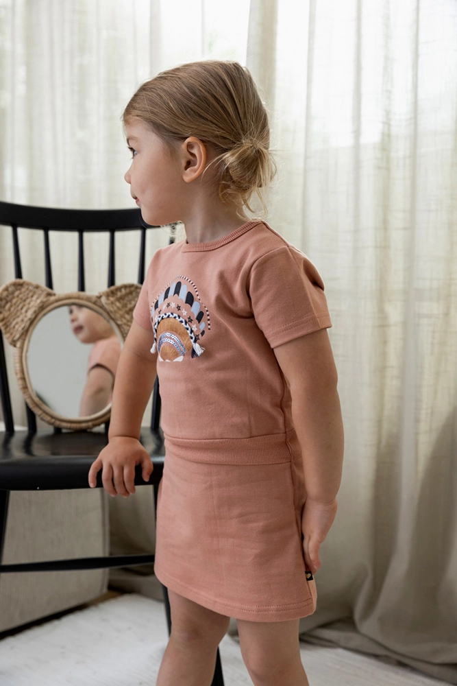 Stijlvolle meisjesjurk DIRKJE in een elegante oudroze tint die elke kleine fashionista zal verrukken. Biedt een comfortabele pasvorm, hoogwaardige afwerking en een prettig materiaal met een vleugje elastaan voor extra elasticiteit. Ideaal voor elke dag én feestelijke gelegenheden, met een trendy design en machinewasbaar.