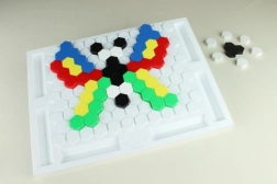 Dit bouwpakket van het mozaïektype biedt kinderen veel mogelijkheden om hun creativiteit te ontwikkelen en hen basisvaardigheden te leren via spel. De belangrijkste elementen van het bouwpakket zijn: