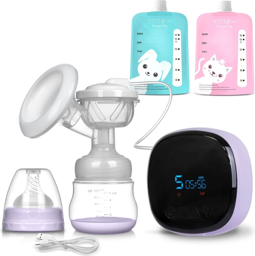 Dankzij het intuitieve bedieningspaneel met LCD kies je de modus (stimulatie, massage, diep kolven), pas je de intensiteit aan en controleer je de batterijstatus. De kolf is zeer stil, gemakkelijk te demonteren en schoon te maken. Hij is BPA-vrij voor maximale veiligheid van je baby. In de doos vind je een fles van 150 ml, een speen, een voedingsadapter en 2 steriele zakjes voor melk met schroefdoppen.