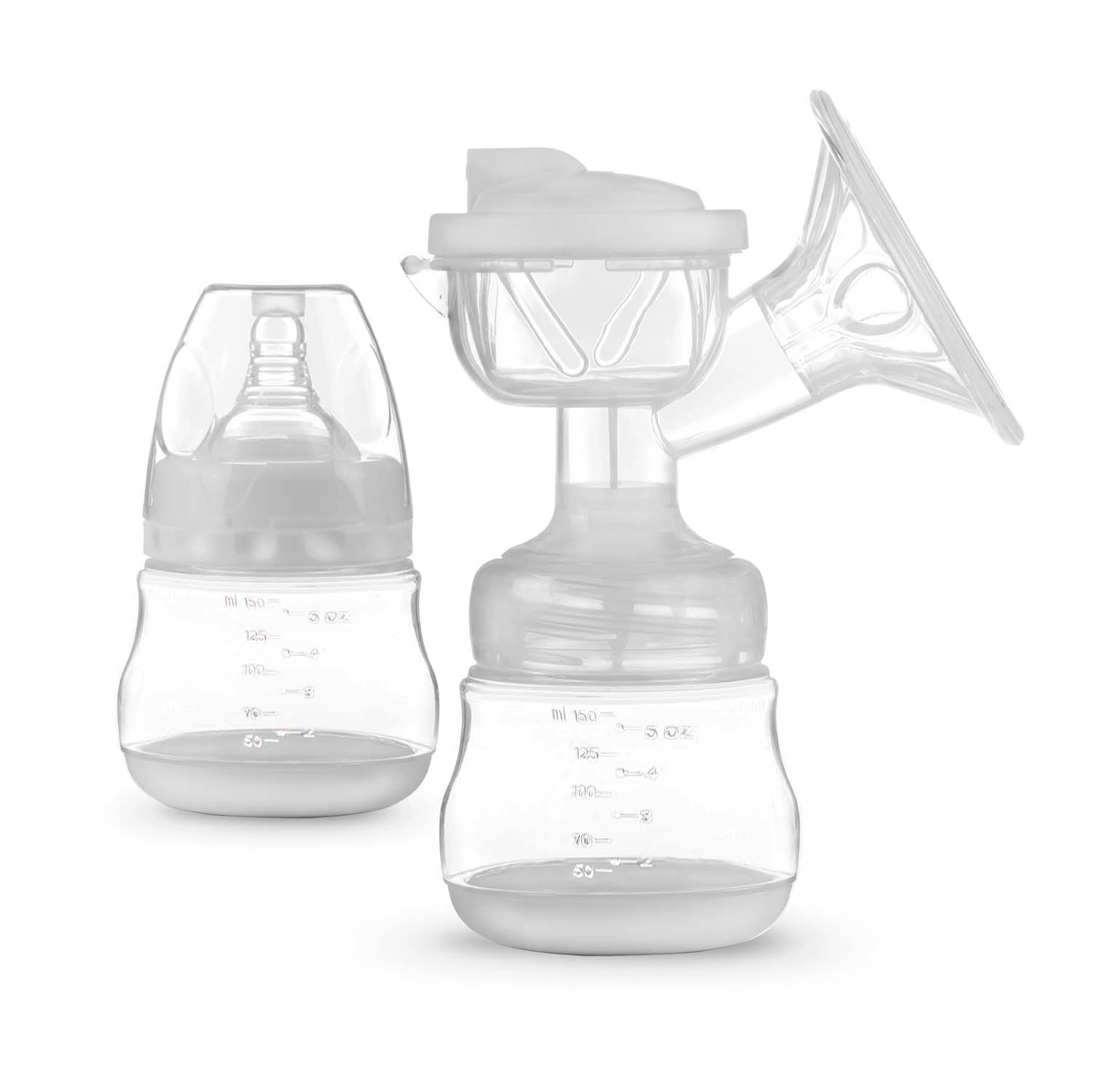 Trechter met massage-inzet, kolfhuis, siliconenmembraan en slang, ventiel, fles 150 ml, speen met kap, bedieningsunit, voedingsadapter