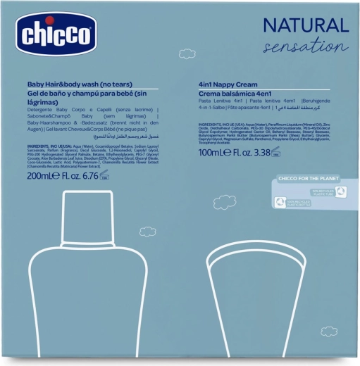 De CHICCO Natural Sensation Daily Protection cadeauset is een uitstekende keuze voor de dagelijkse verzorgingsrituelen van je baby. De 2-in-1 shampoo en wasgel reinigt zacht en laat huid en haartjes zacht en makkelijk doorkambaar achter, terwijl de billencrème met zink een beschermende barrière vormt en effectief irritatie en roodheid helpt voorkomen.