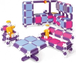 De bouwset SEVA RODINA – Wonen biedt talloze mogelijkheden voor jonge bouwers. Dankzij de combinatie van paars, roze en lichtblauw ontstaan originele modellen die elk kind zullen verrassen. Zet een comfortabele “landingsbaan” in elkaar – een breed bed, een moderne hoekkeuken met gootsteen en ingebouwde koelkast, een eethoek, bank, plankjes, kastjes en handige rekken.