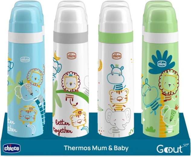 De stijlvolle groene CHICCO-thermosfles met speelse afbeeldingen combineert functionaliteit en veiligheid. Dankzij hoogwaardig roestvrij staal is hij schokbestendig en tegelijk eenvoudig hygiënisch te houden. Het praktische deksel fungeert als bekertje, zodat je je drankje overal onderweg gemakkelijk kunt inschenken.