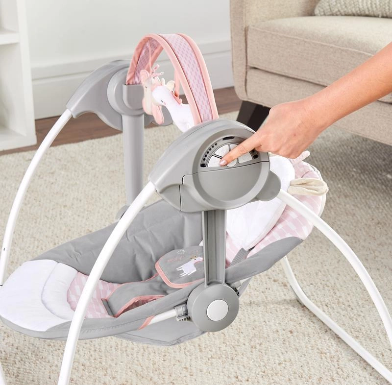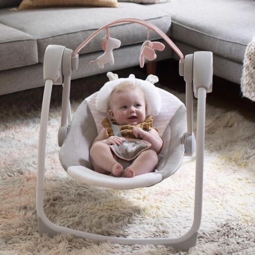 Ingenuity Flora the Unicorn is een lichte en supercompacte schommel die ruimte bespaart zonder in te leveren op functies. Dankzij de ComfortRecline-technologie stel je de hele zitting eenvoudig in op twee comfortabele posities, terwijl WhisperQuiet zorgt voor zeer stille werking voor ongestoord schommelen en rust.