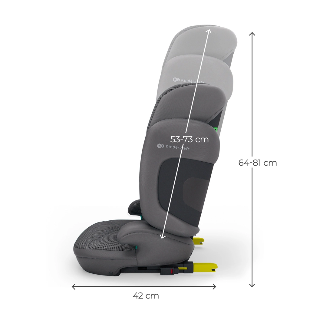De autostoel KINDERKRAFT XPAND 2 PRO groeit mee met je kind dankzij het DUO EXPAND-systeem, waarmee je met één beweging zowel de hoogte van de hoofdsteun als de breedte van de rugleuning kunt aanpassen. De drielaagse hoofdsteun H-GUARD+ met traagschuim en de versterkte zijkanten SPS met EPP-schuim absorberen de impactenergie effectief en beschermen het hoofd, de nek en de schouders.
