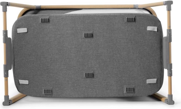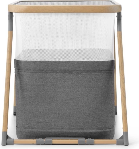 Mesh-panelen ondersteunen de luchtcirculatie en zorgen voor visueel contact met je kindje, terwijl het aluminium frame met houtdecor stabiliteit garandeert.