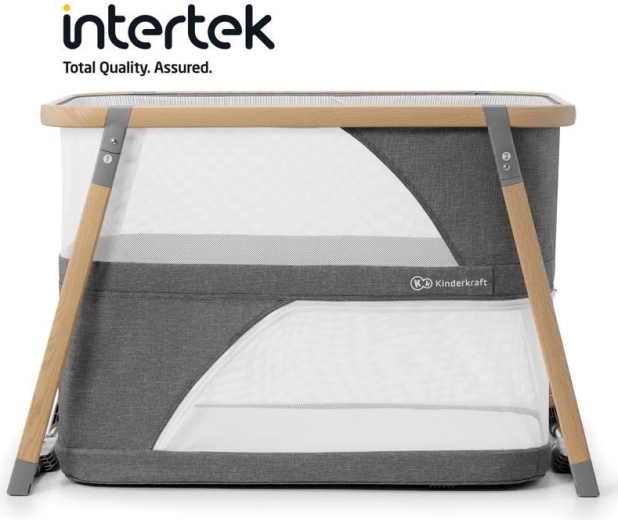 Het multifunctionele 4-in-1 KIDERKRAFT Sofi ledikant in elegant grijs combineert een ledikant, reisbedje, box en schommel. Biedt supersnel inklappen in 5 seconden, een licht aluminium frame met houtdecor, ademende mesh-zijkanten en een kwalitatieve schuimmatras voor veilig en comfortabel slapen en spelen, thuis en onderweg.