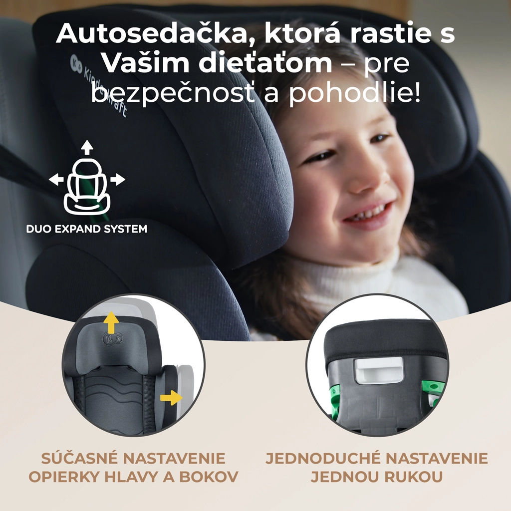 De Kinderkraft XPAND 2 i-Size biedt een hoger niveau van veiligheid en comfort voor dagelijks vervoer van kinderen van 100 tot 150 cm. De constructie voldoet aan de nieuwste norm R129/03 i-Size en is getest in toonaangevende Europese laboratoria. Dankzij ISOFIX-connectoren en de duidelijke gordelgeleiding met groene indicator is de installatie snel en intuïtief.