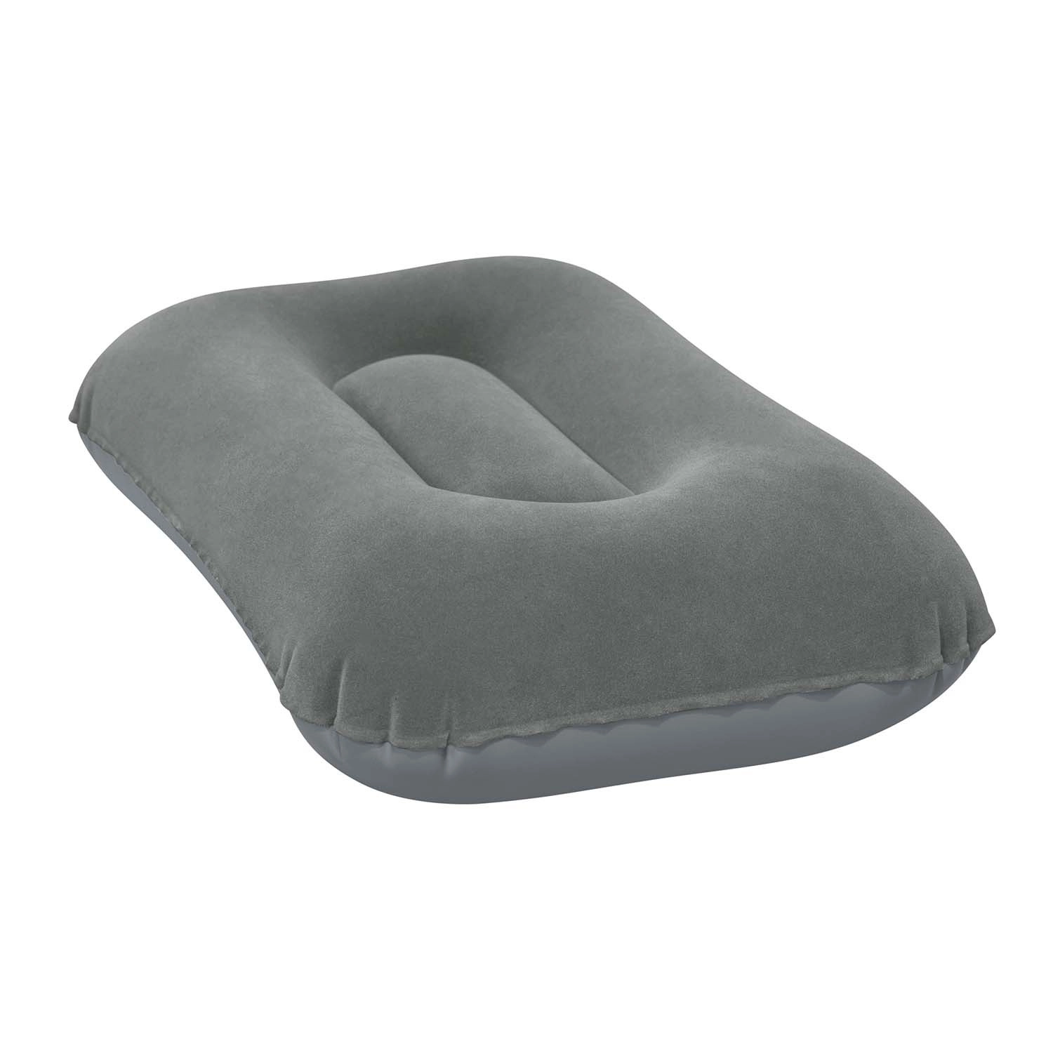 Licht en compact opblaasbaar kussen van BESTWAY met afmetingen 42 × 26 × 10 cm, ideaal voor reizen, kamperen en thuis. Het heeft een zachte fluwelen (geflockte) toplaag, een ergonomische coil-beam constructie voor betere ondersteuning van hoofd en nek, en snel opblazen en leeglaten. Opgevouwen neemt het minimaal ruimte in en past het gemakkelijk in een zak of rugzak.