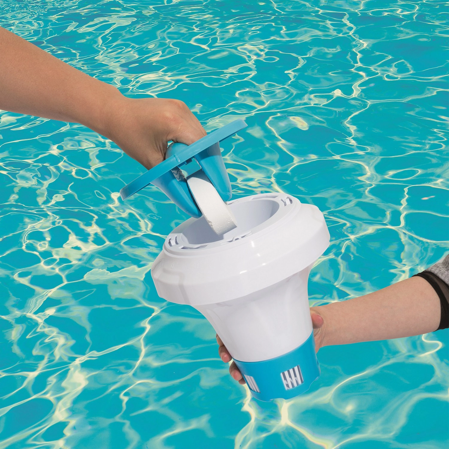 Houd het water in uw zwembad kristalhelder en hygiënisch veilig met de drijvende BESTWAY-dispenser. Plaats eenvoudig een tablet onder de dop en de dispenser geeft de werkzame stof geleidelijk af aan het water. De drijver is gemaakt van niet-corrosief en duurzaam polypropyleen, waardoor hij licht is, stabiel op het wateroppervlak blijft drijven en bestand is tegen zonlicht en chemicaliën.