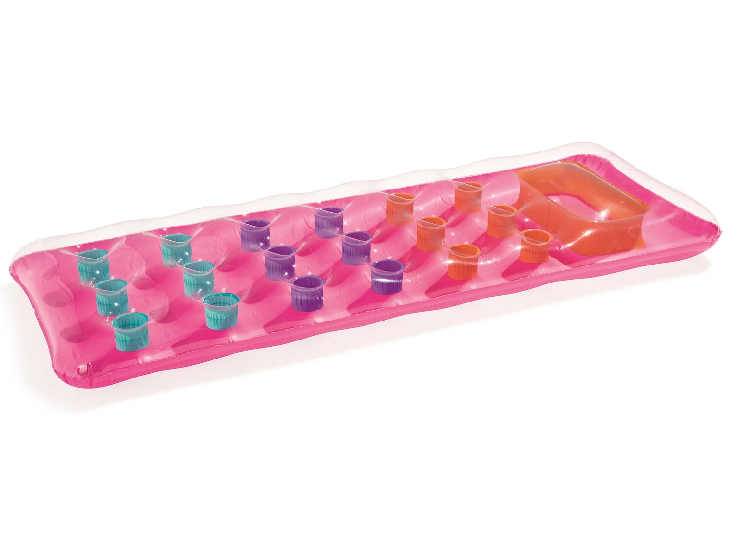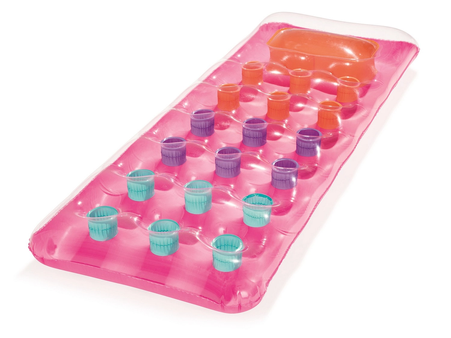 Het luchtbed is gemaakt van duurzaam PVC dat bestand is tegen zomerse waterpret bij het zwembad én op het strand. Het opblaasbare kussen biedt comfortabele hoofdbesteuning, terwijl de I‑beam‑kamerconstructie zorgt voor stevigheid en comfort. In de verpakking vind je ook een reparatiepleister voor het snel verhelpen van kleine ongelukjes.