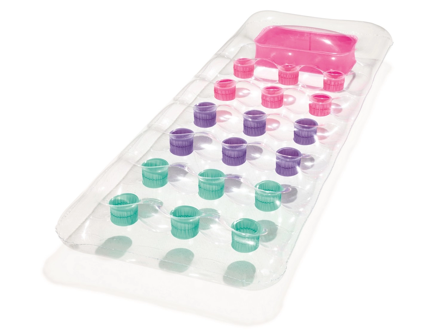 Geniet ten volle van de zomer met dit comfortabele opblaasbare waterluchtbed. Dankzij het transparante kijkvenster in het kussen kun je onder het wateroppervlak kijken, terwijl de gekleurde kamers voor aangename vering en stabiliteit zorgen. Het duurzame PVC‑materiaal, de praktische hoofdbesteuning en de maximale draagkracht van 90 kg maken dit luchtbed ideaal voor aan het zwembad én op het strand. Inclusief reparatiepleister.