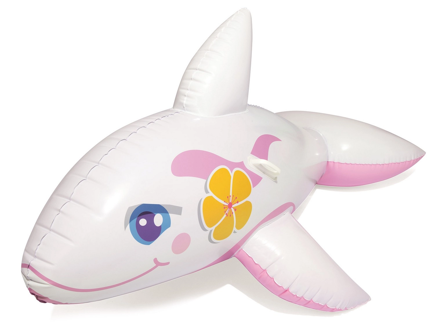 De walvisvorm met vinnen en staart zorgt voor een betere balans op het wateroppervlak en trekt de aandacht met een vrolijke print.