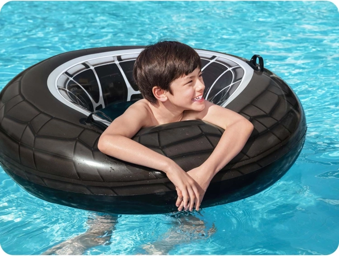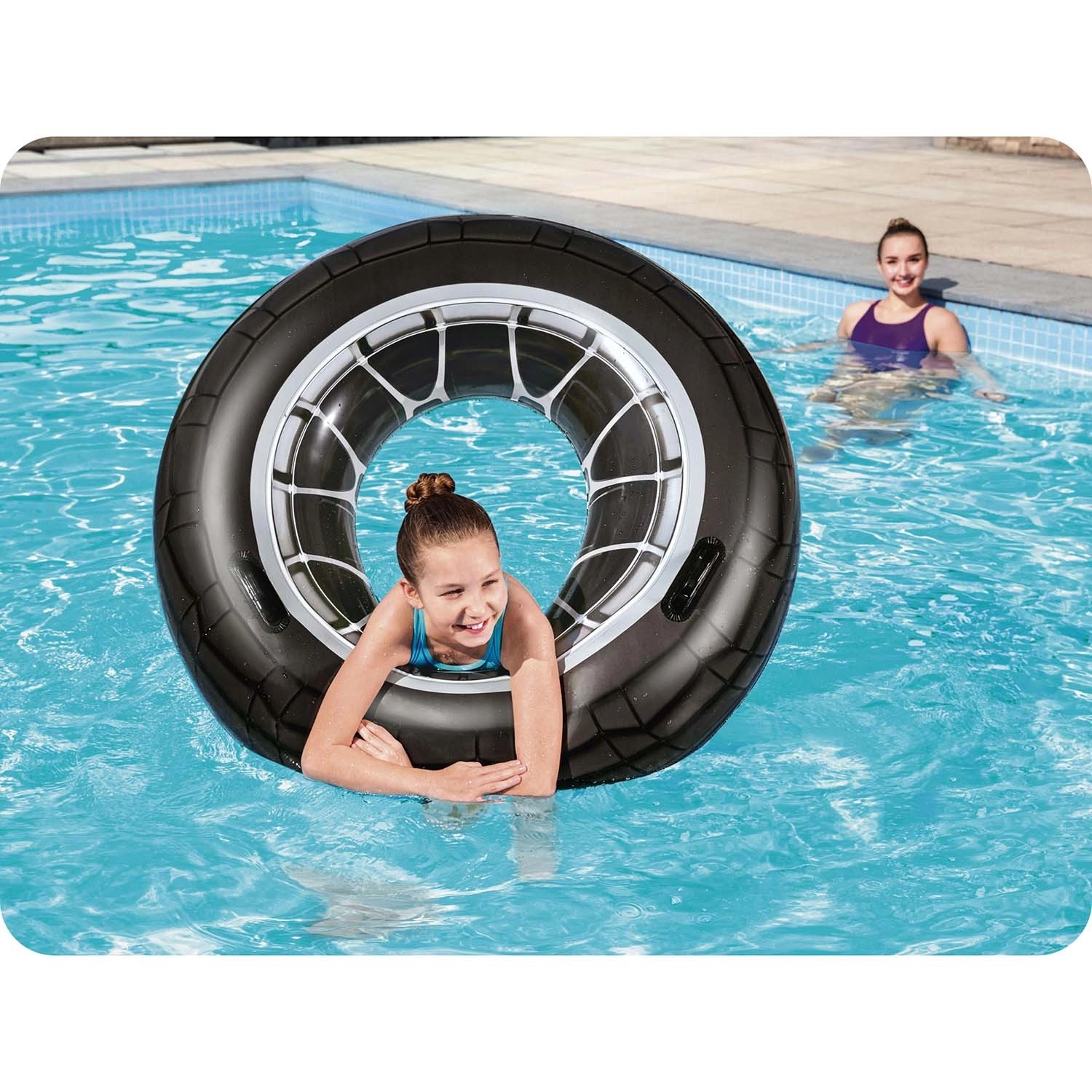Deze stijlvolle zwemring met een realistische bandenprint is een geweldige keuze voor ontspannen loungen en speels waterplezier. De grote diameter van 119 cm biedt comfortabele ruimte en uitstekende drijfondersteuning voor tieners en volwassenen.