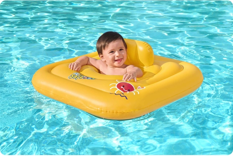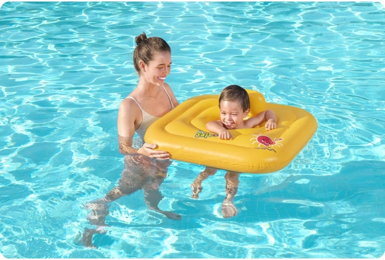 De heldergele kleur voor betere zichtbaarheid in het water en de stabiele vierkante vorm ondersteunen een veilige kennismaking met de wateromgeving.