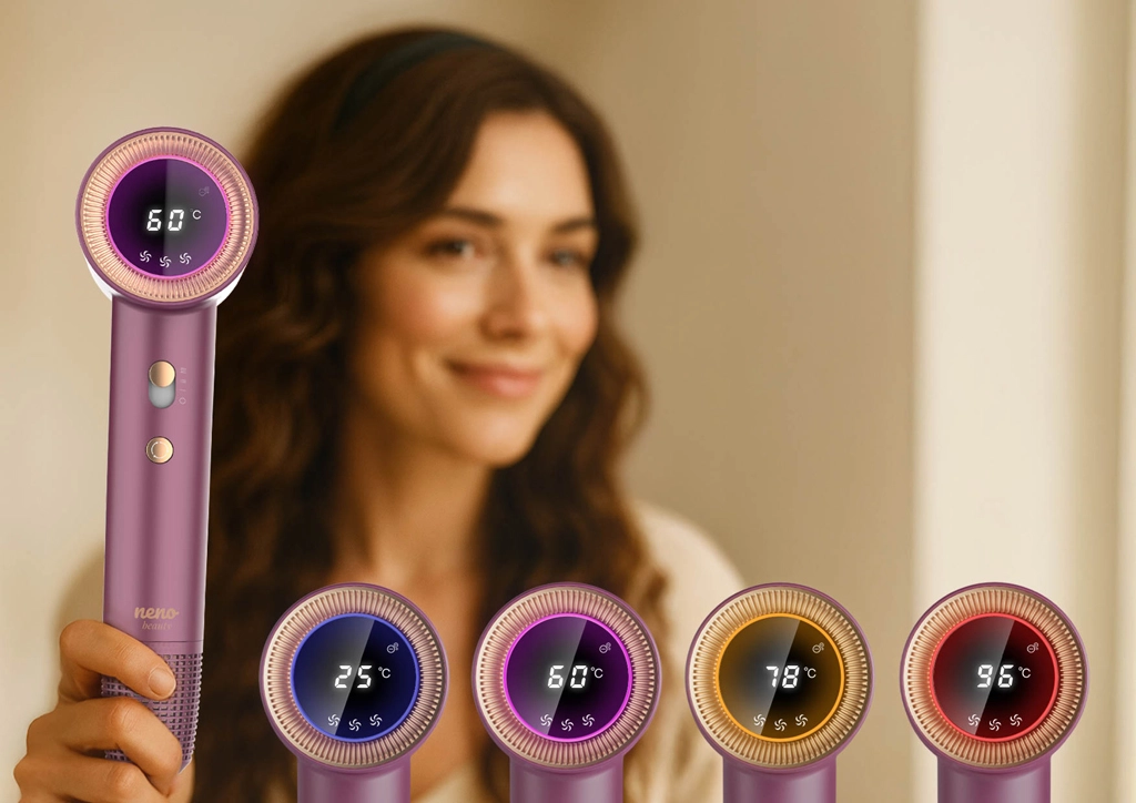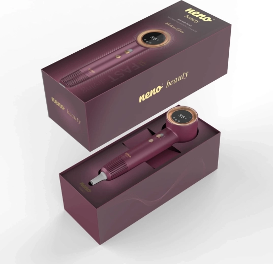 Neno Beauty Silvia combineert moderne technologie met dagelijks comfort. Dankzij de geavanceerde ionisatie elimineert hij statische elektriciteit, sluit hij de haarschubben en laat hij het haar glad en glanzend achter. Een slimme sensor controleert de temperatuur tot 100× per seconde en beschermt zo het haar tegen oververhitting en beschadiging. Het LED-display met kleurring geeft overzichtelijk de temperatuur en luchtsnelheid weer, zodat je met één blik de styling onder controle hebt.