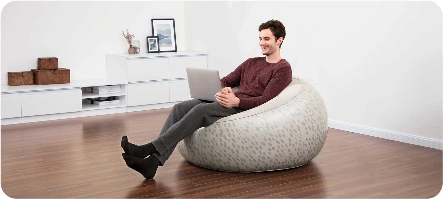 Geniet van ontspanning op de Bestway opblaasfauteuil, die stijl, comfort en functionaliteit combineert. Dankzij het duurzame PVC met een aangename velours toplaag zit je zacht en comfortabel, terwijl twee luchtkamers en de interne Coil‑Beam constructie voor stabiliteit en ondersteuning zorgen.