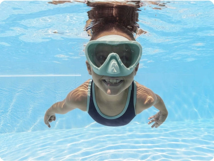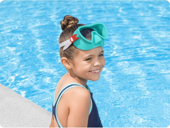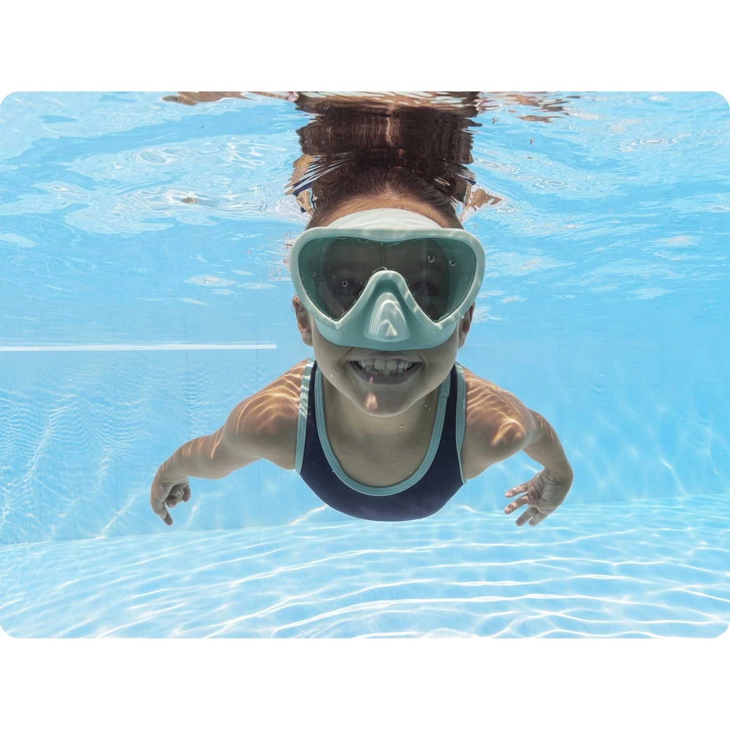 De turkooize BESTWAY duikbril is ideaal voor zwemmen in het zwembad en ondiep snorkelen. De duurzame polycarbonaatlens met UV-filter beschermt de ogen tegen de zon en biedt helder zicht onder water. De zachte afdichtrand sluit comfortabel aan op het gezicht en minimaliseert lekkage.