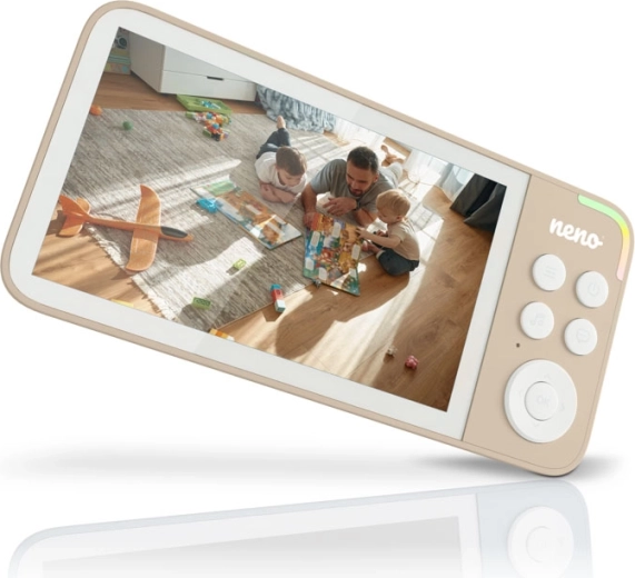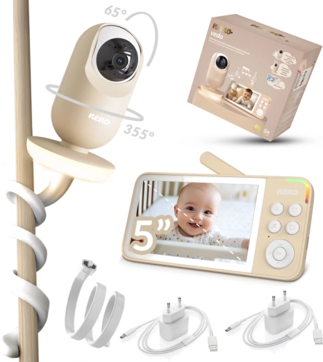 Neno Vedo Cream is een betrouwbare video-babyfoon die je maximale controle geeft over wat er in de babykamer gebeurt. Het grote 5" kleurendisplay levert een helder beeld, terwijl de automatische nachtmodus ook in volledige duisternis duidelijke opnames biedt. De draaibare, op afstand bedienbare camera laat je een brede ruimte volgen en met de 4× zoom bekijk je moeiteloos elk detail.